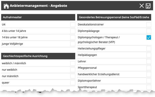 Hinterlegen Sie hier die Eigenschaften und Leistungen der jeweiligen Einrichtung.