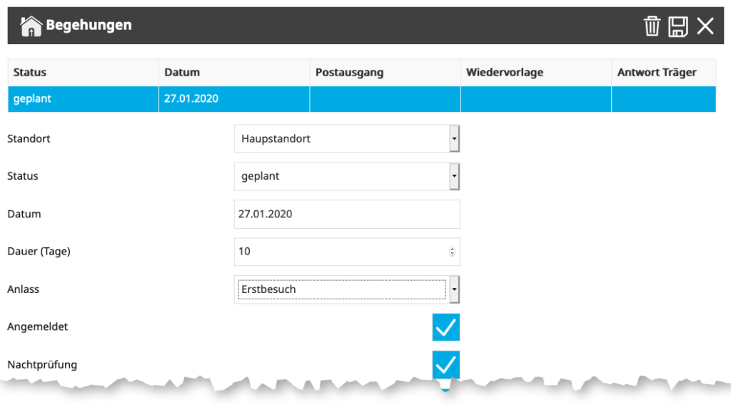 Begehungen können Sie in diesem Dialog detailiert hinterlegen.