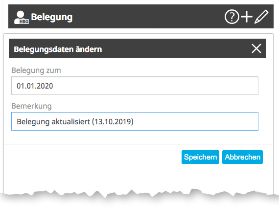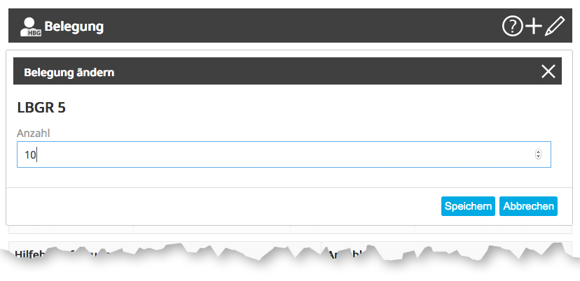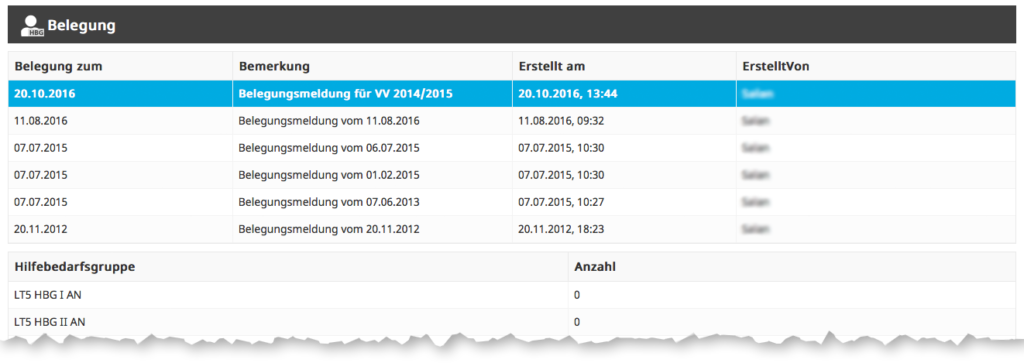Hier werden die hinterlegten Belegungen und Hilfebedarfsgruppen eingesehen. Zum Überarbeiten klicken Sie doppelt auf die jeweilige Zeile.