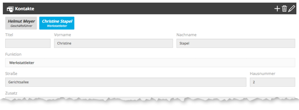 Unter Kontakte tragen Sie die Ansprechpartner der jeweiligen Einrichtung ein. Dabei können Sie den einzelnen Mitarbeitern den Beruf / die Funktion zuordnen.