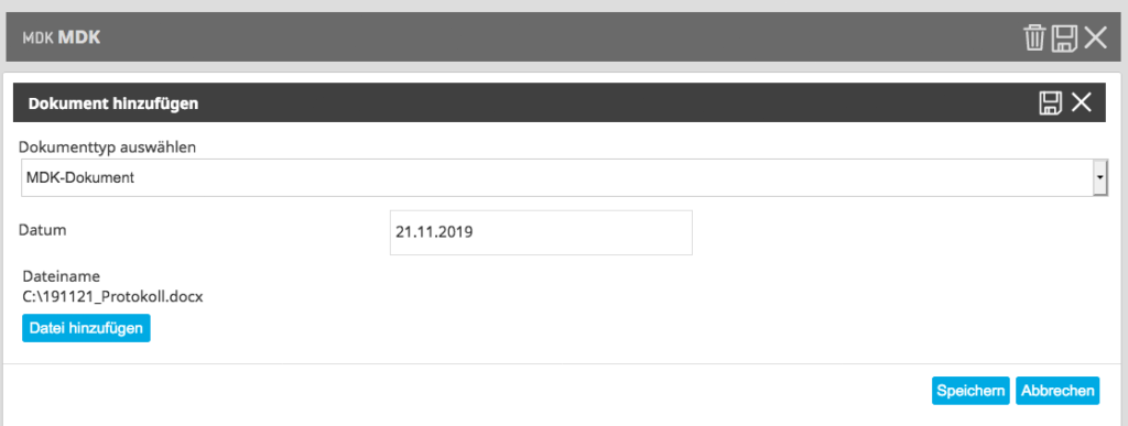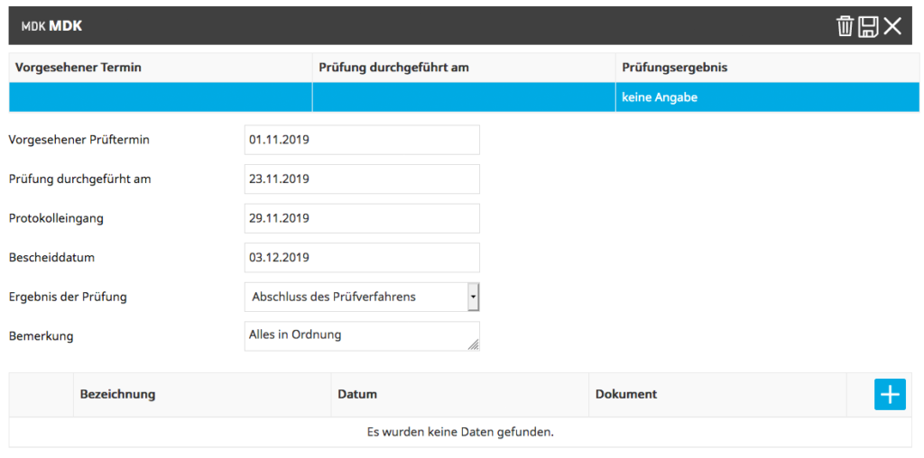 Im Bereich MDK tragen Sie die Eckpunkte der Prüfung ein.