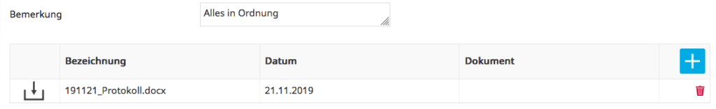 können Sie die hinterlegte Datei herunterladen. Über das Löschen-Symbol