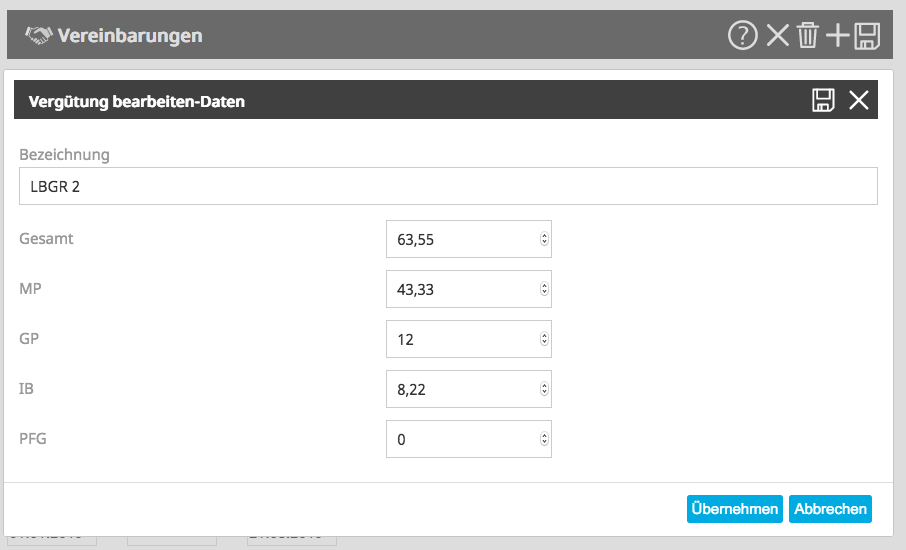 | Eine Vergütungsvereinbarung wurde gedruckt und versandt. Die Vergütungsvereinbarung ist gesperrt und kann nicht weiter bearbeitet werden. | |